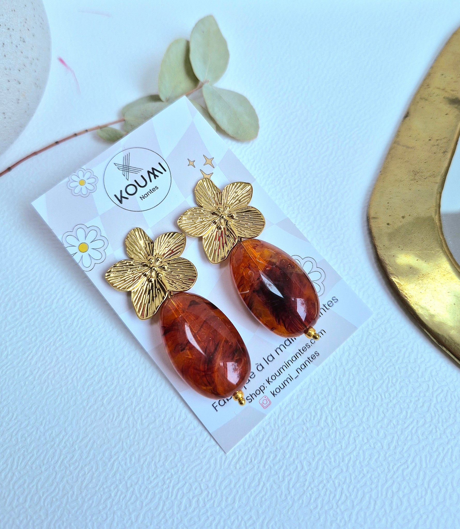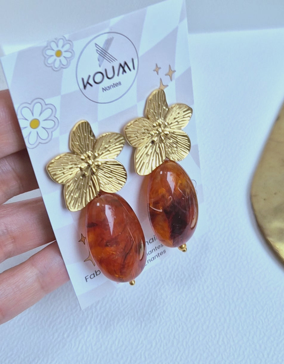 Apportez une touche de lumière à votre visage avec ces boucles d'oreilles pendantes. Mariant une fleur finement ciselée et une perle marbrée, elles sont le parfait équilibre entre vintage et modernité.