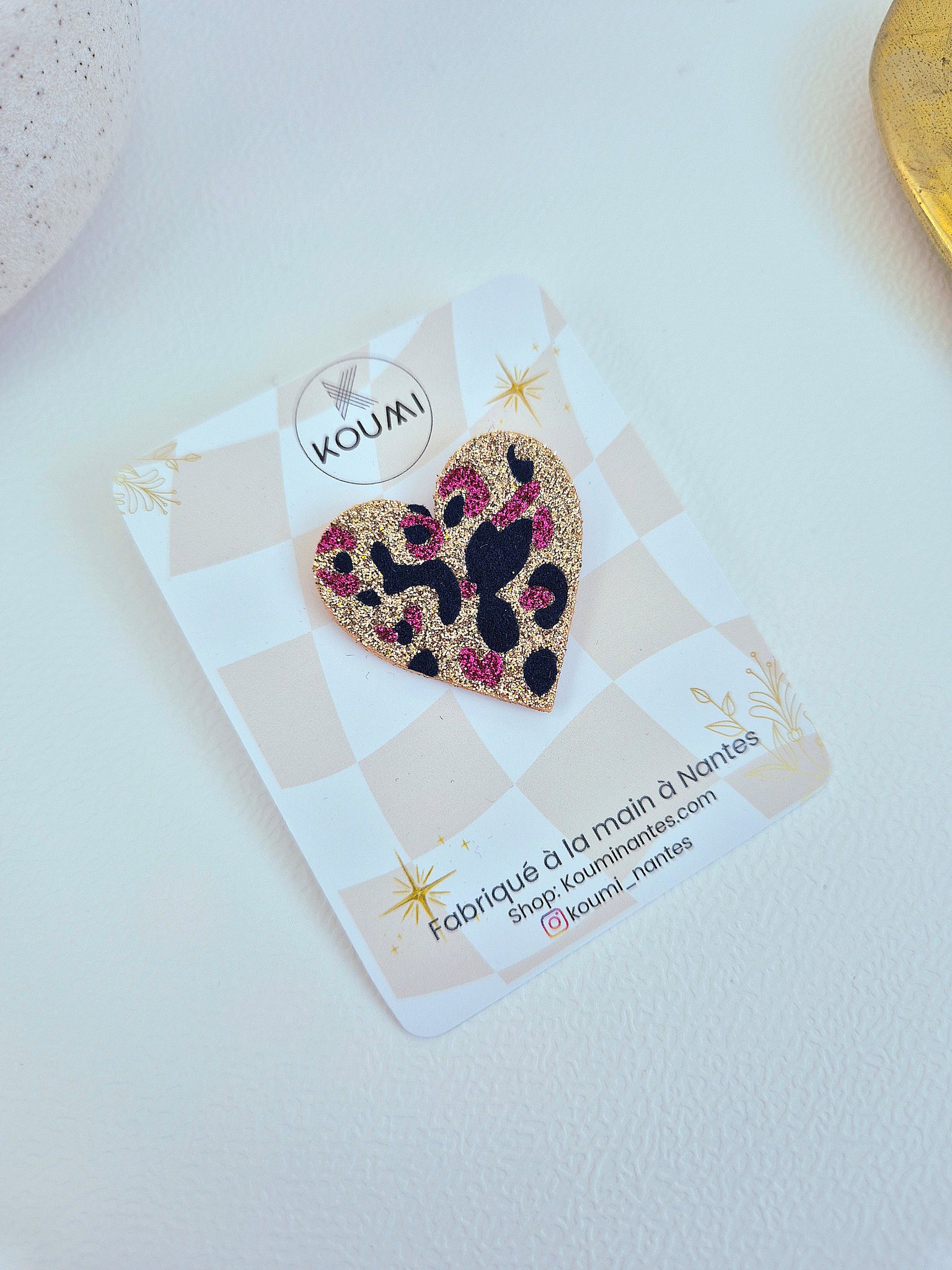 Pin's Coeur paillettes et Léopard 🐆